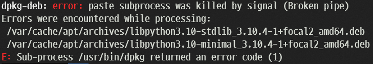 dpkg-deb: error: paste subprocess was killed by signal (broken pipe) 오류 해결하기