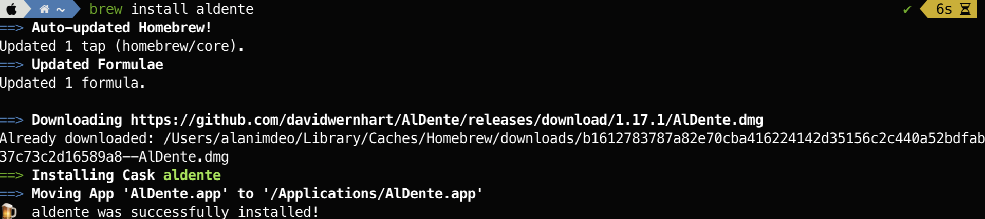 brew install aldente