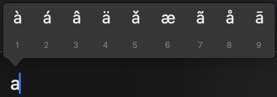 macOS에서 영어를 여러 번 입력하려고 키를 길게 누르고 있으면 위 사진과 같이 다이어크리틱(diacritic)이라고 부르는 특수 기호들이 나온다. 하지만 저런 특수한 글자들을 쓸 일이 없는 나에게는 이 기능이 불편하기만 했다. 다행히 해당 기능은 터미널에서 명령어를 이용해 끌 수 있다.